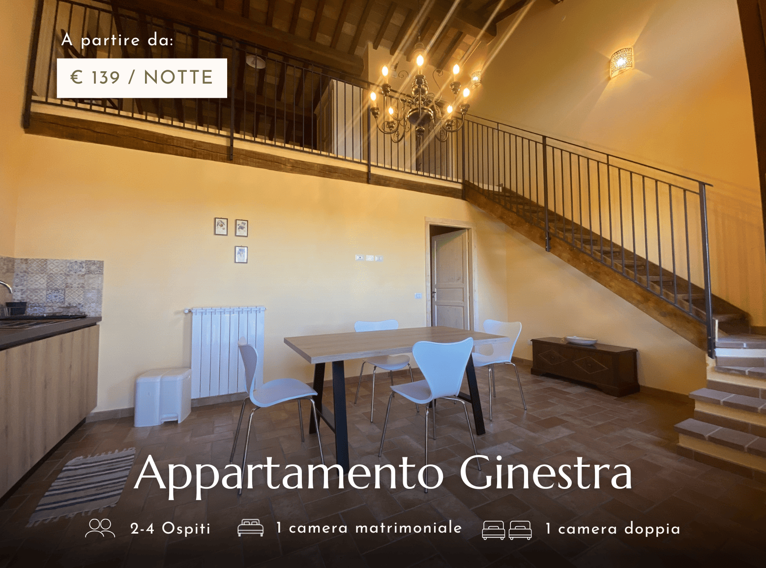 Scopri i nostri appartamenti vacanze in Umbria, situati in un antico casale ristrutturato, immerso nella tranquillità della campagna umbra. Perfetti per coppie, famiglie o piccoli gruppi, i nostri appartamenti offrono comfort, autenticità e una vista spettacolare sulle colline coltivate a olivo e a vite.